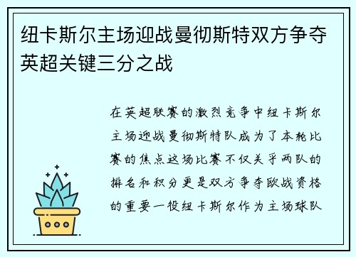 英超焦点战狼队迎战纽卡斯全力争胜展现实力与决心